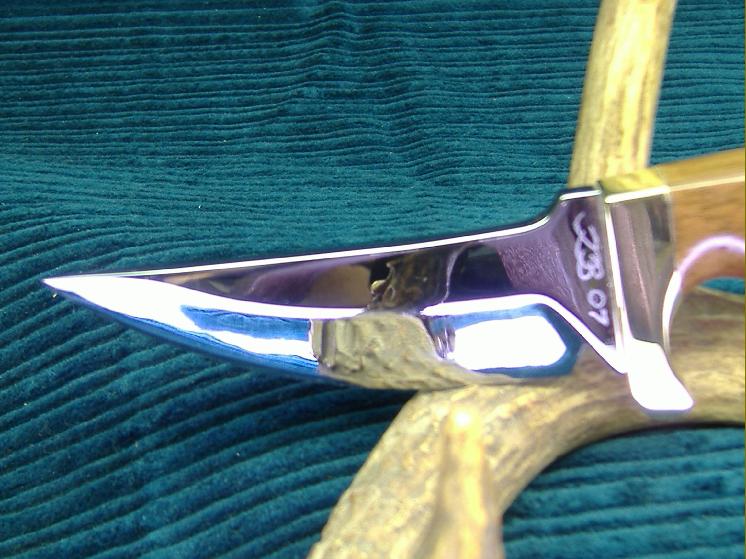 I'm sure this blade shape has a name of some sort, but I just call it a modified upturned skinner. Whatever it's called I love it. The edge radius goes nearly to the guard. Combined with the diminishing radius hollow grind, the milder upturn is extremely strong at the point. It also gives it a slender profile for accomplishing those delicate jobs. And the rounded handle and deep finger grips provide a grip that is hard to describe. The balance, utility and positive feel make this a tool that is as useful and efficient as it is unique. Kind of like it's name Sake. The Cuda is as efficient and recognizable as any predator in the ocean. And like this Cuda...it has the skills to pay the bills!